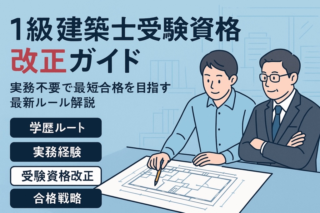 「実務がないと受験できない?」――いまは違います。建築士法改正により、一級建築士は受験段階で実務不要、合格後の免許登録で実務が必要という二段階になりました。とはいえ、学校ごとの指定科目や履修証明の要件、二級建築士・建築設備士からのルートなど、判断ミスが起きやすいポイントが多いのも事実です。