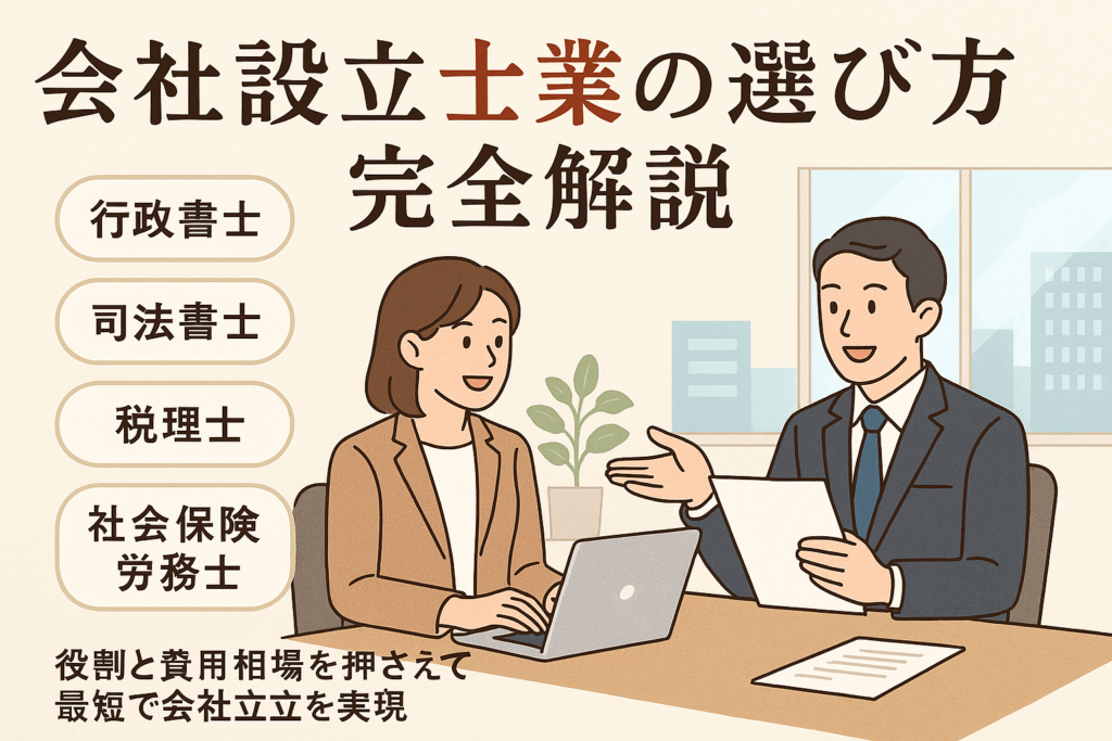 | 行政書士 | 定款作成、許認可申請書類の作成 | 行政書士費用は5〜10万円前後 | 許認可が必要、コストを抑えたい |